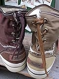 こだわりの革ヒモを使用したハイカットスニーカータイプで、全体にキャンバス(生地)素材とスエード(天然起毛)素材を使用。